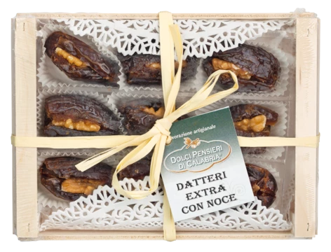 Die große, weiche Medjool ist die Königin unter den Datteln. Sie wird mit Walnüssen gefüllt. Dadurch entsteht ein köstlicher Geschmack und Biss.