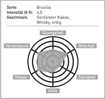 Mit BRASILIA erhalten Sie einen kräftig-vollmundigen Kaffee, der mit gerösteten Kakao-Noten lockt und mit seinem würzigen Geschmack samt ausgeprägter Intensität begeistert.