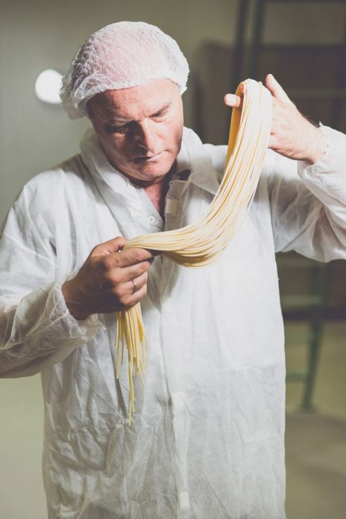 Das Resultat sind diese hochwertigen Hausmacher Nudeln, die nach wie vor mit traditioneller Rezeptur hergestellt werden und durch die Bronze Werkzeuge und der Trocknung bis 60 Stunden eine raue, fast mehlige Oberfläche erhalten, die hervorragend für die Aufnahme der Saucen dient.