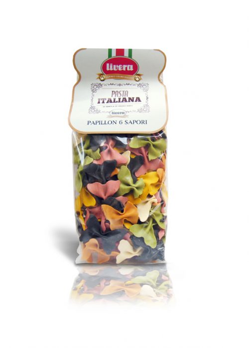 ZUTATEN – Hartweizengrieß, Wasser, 2% Spinatpulver, 2% Paprikapulver, 2% Rote Beete, 2% Kurkuma, 1% Sepia.