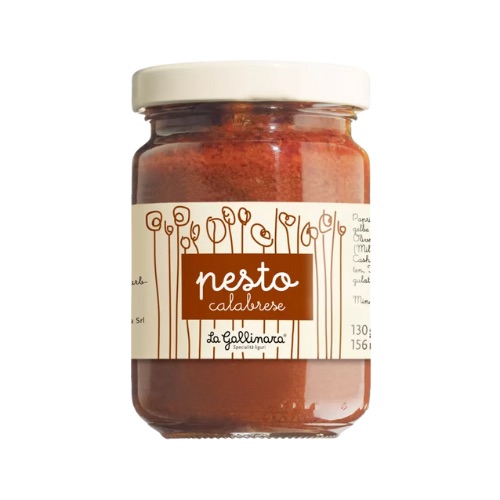 ZUTATEN: Chilizubereitung 50%, (Chili, Salz), natives Olivenöl extra, getrocknete Tomaten 4%, Grana Padano Käse, (Milch, Lab, Konservierungsstoff: Lysozym aus Ei, Salz), Erdnüsse 3%, Knoblauch, Chili 1%, Säureregulator: Zitronensäure.