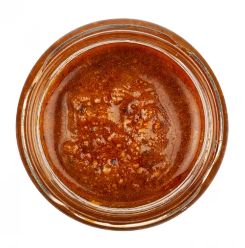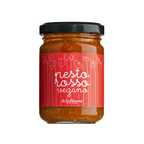 ZUTATEN: Getrocknete Tomaten 20%, (Herkunft: EU und Nicht-EU), Olivenöl, Genueser Basilikum DOP 10%, Tomatenmark, Bambusfaser, Cashewkerne, Knoblauch, Salz, Säureregulator: Citronensäure