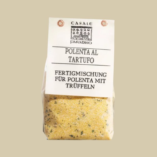 Zutaten: Maismehl 98%, Sommertrüffel (Tuber aestivum) 1%, Steinpilze (Boletus edulis), Petersilie, Schnittlauch, Knoblauch, Trüffelaroma