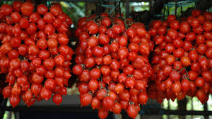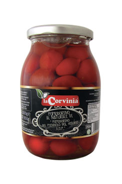 Typische kleine Tomaten aus der Gegend unterhalb des Vesuvs, bei Neapel. Diese besonders schmackhafte Tomatensorte erinnert an Cherry Tomaten, kann aber durch die Spitze unterhalb der Frucht, ganz klar unterschieden werden.