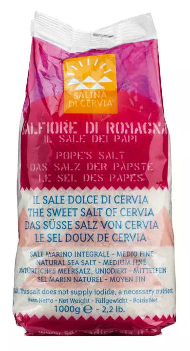 Die mittelfeine Salzblüte wurde über 400 Jahre jährlich dem jeweiligen Papst in den Vatikan geliefert. Seit 2003 wird die Tradition fortgesetzt. Kein Wunder, das Salz ist fein und süßlich und verändert den Geschmack der Speisen nicht. Das Salfiore wird zu Beginn der Saison geerntet, bleibt völlig natürlich und wird lediglich mit Wasser gereinigt, das einen etwas höheren Salzgehalt hat.