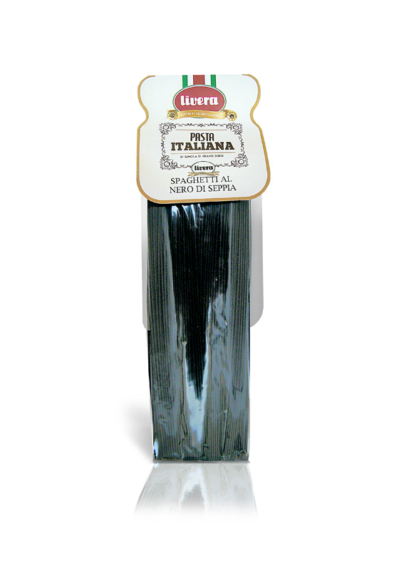 Zutaten: Hartweizengrieß, Wasser, 1% Sepia Tinte