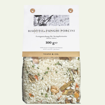 Zutaten: Carnaroli Reis 96%, Steinpilze (Boletus edulis) 2,6%, Karotten, Schnittlauch, Petersilie, Knoblauch.