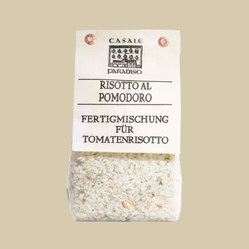 Zutaten: Carnaroli Reis aus Italien 94%, Tomaten 2%, Karotten, schwarze Oliven, Schnittlauch, Petersilie, Zwiebeln, Basilikum.